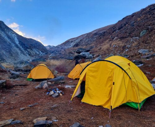 Camping treks are outings where you spend your nights in tents. Additionally, these tents are pitched in locations that meet the basic requirements of a camping ground, such as a source of water, safety from rockfalls, flash floods, etc. Moreover, importantly, good views are sought, to mention just a few.